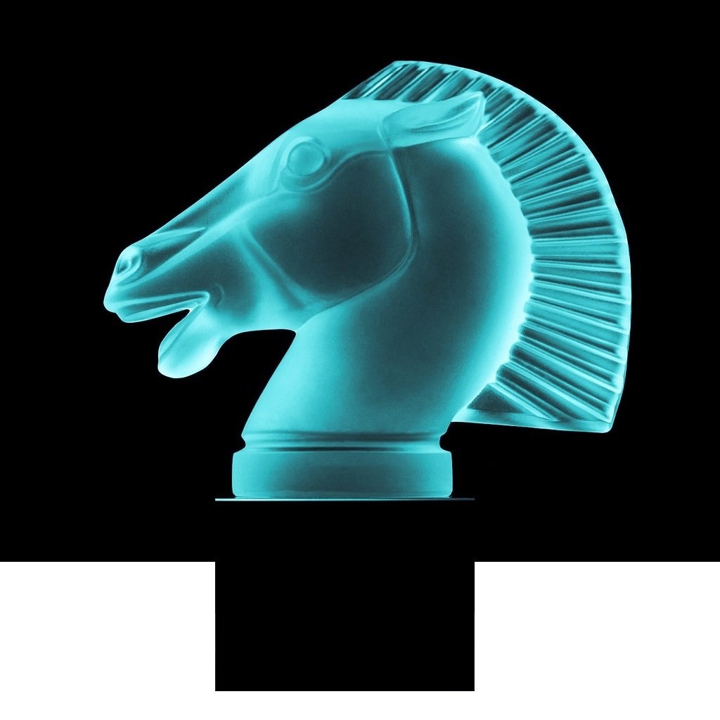 Art Deco Longchamp Hood Ornament Blue Uranium Glass with Black Glass Base — 1930s H. Hoffmann