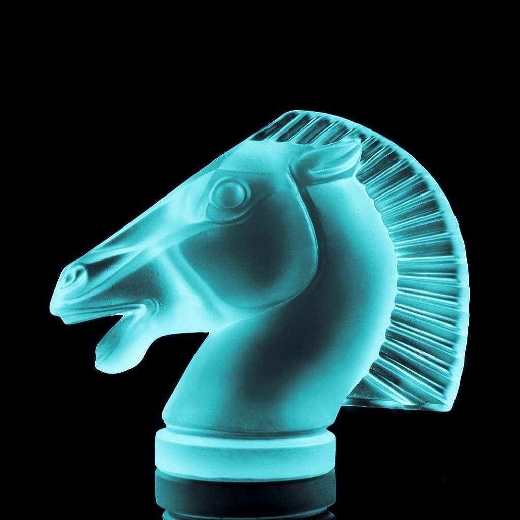Art Deco Longchamp Hood Ornament Blue Uranium Glass — 1930s H. Hoffmann