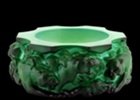 Art Deco Bohemian Malachite Jade Glass ' Panthers ' Large Bowl 1930' H.Hoffmann