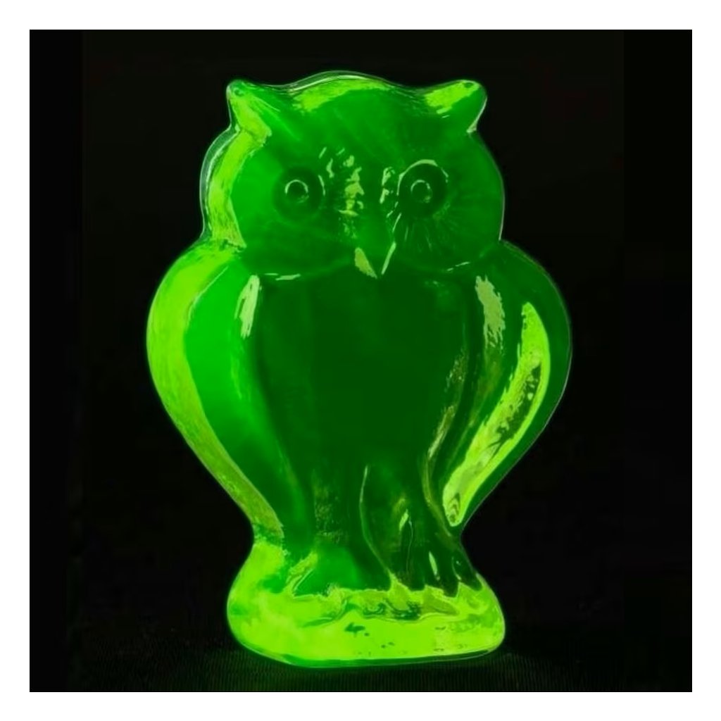 Top Qality Art Deco Vaseline Uranium Glass Figurine. This piece was made in Bohemia from the ORIGINAL Antique molds that was used back in 1930's. It is BREATHTAKING high quality satin finish glass sculpture in stylish Art Deco French design. Timeless design - very beautiful decoration to your house or office. Really nice piece that glows beautifully under uv light.
