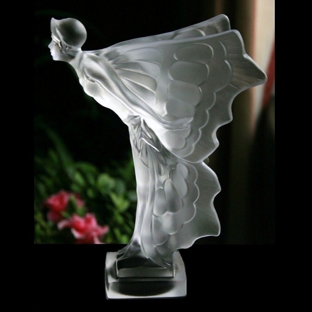 Art Deco Flying Lady Hood Ornament Clear Glass — 1930s H. Hoffmann