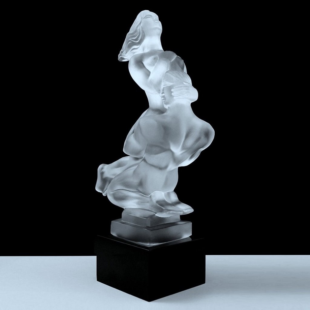 Art Deco Lovers Hood Ornament Clear Glass with Black Glass Base — 1930s H. Hoffmann