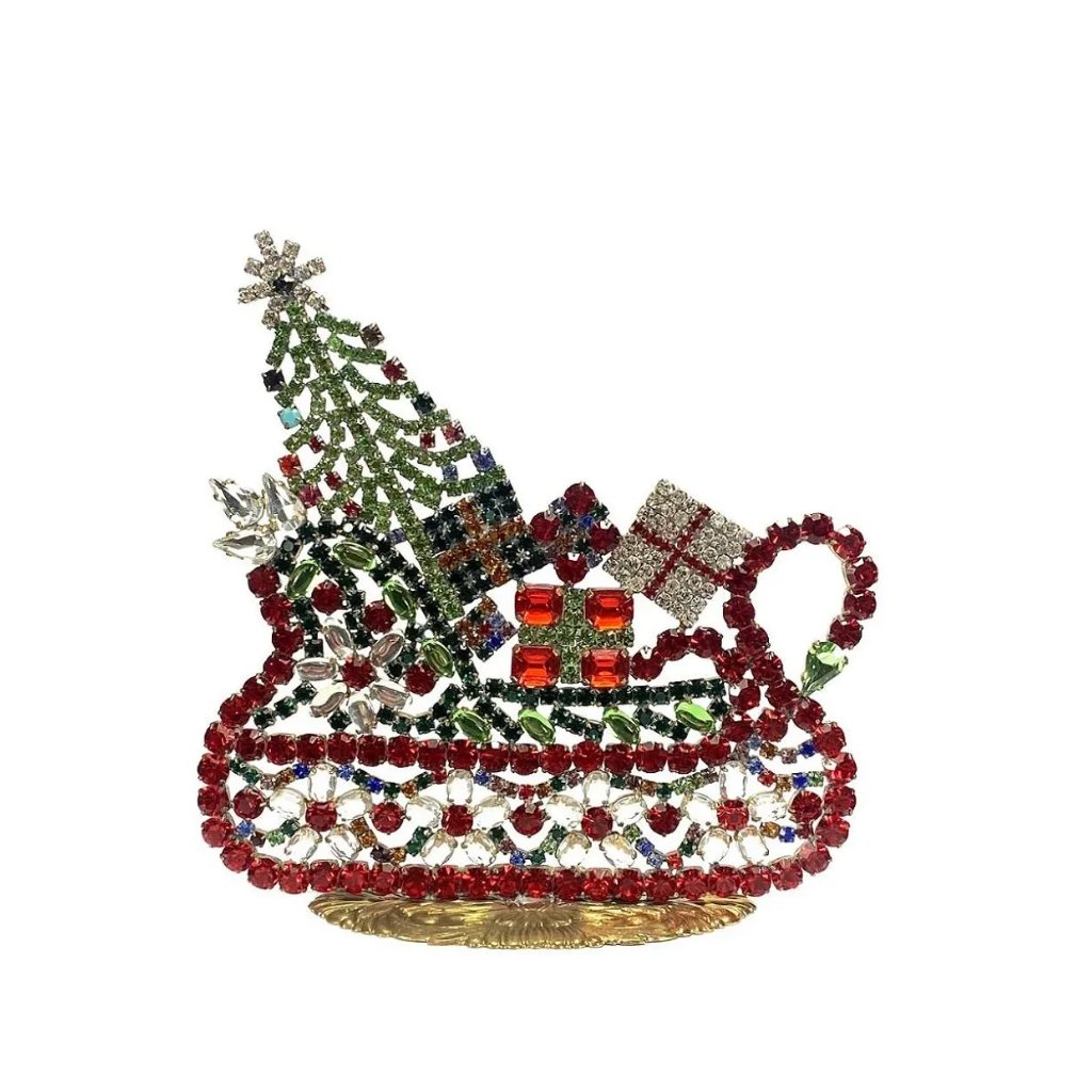Vintage Czechoslovakian Rhinestones. Winter Sleigh With Christmas Gifts . A very beautiful decoration for your home or office. The perfect gift.