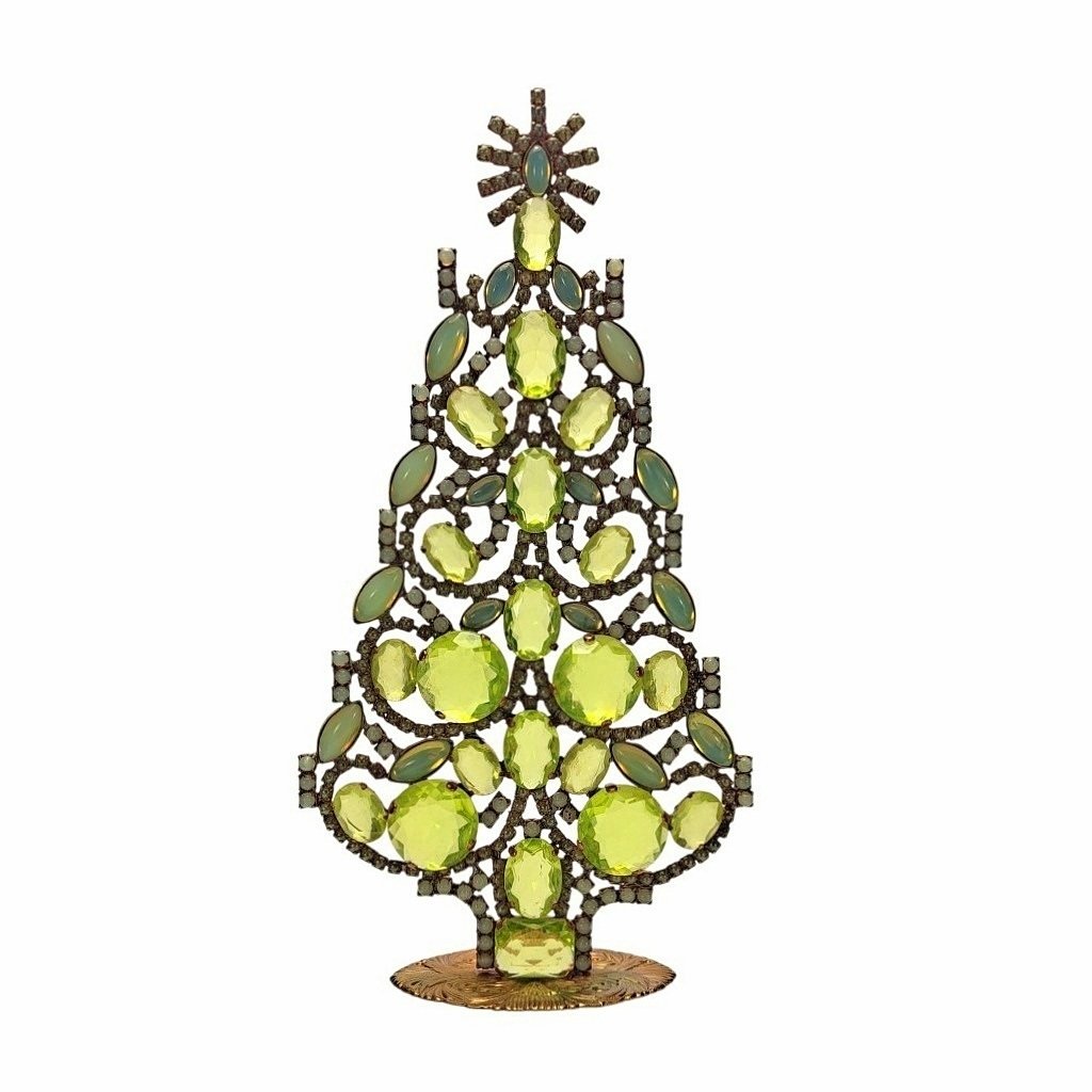 Vaseline Uranium Glass Rhinestones Standing Christmas Tree Large