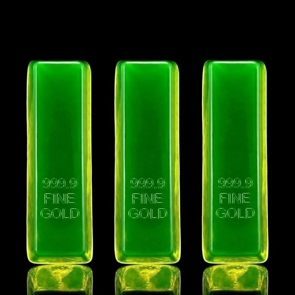 Uranium Glass UV-Glowing 999.9 Fine Gold Bar Set (3 Pieces) – Bohemian Vaseline Glass