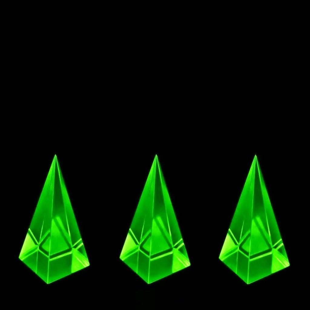 Uranium Glass UV-Glowing Pyramid Paperweights Set of 3 – Bohemian Vaseline Glass (Light Green)