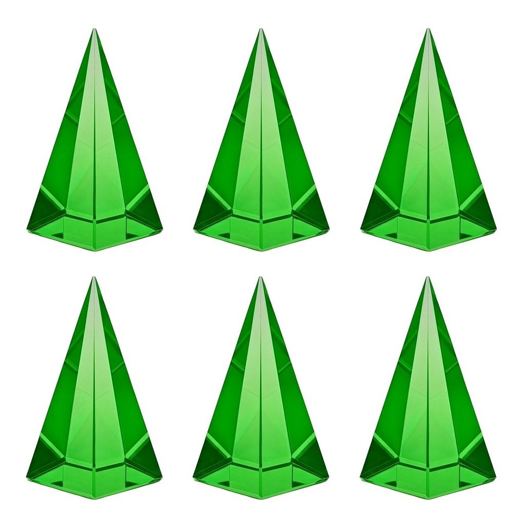 Uranium Glass UV-Glowing Pyramid Paperweights Set of 6 – Bohemian Vaseline Glass (Deep Green)