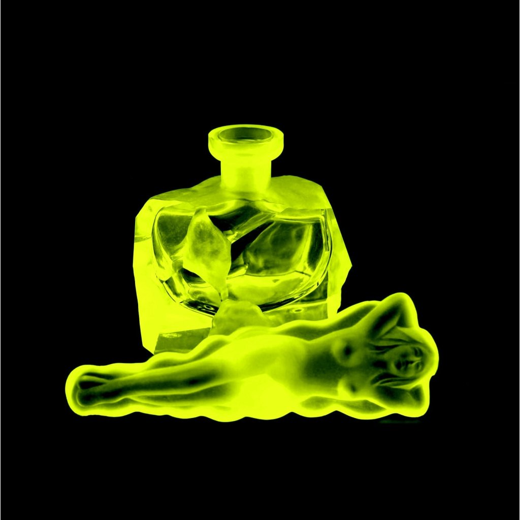 Art Deco Uranium Glass Perfume Bottle 1930s H. Hoffmann – Reclining Nude Lady Stopper