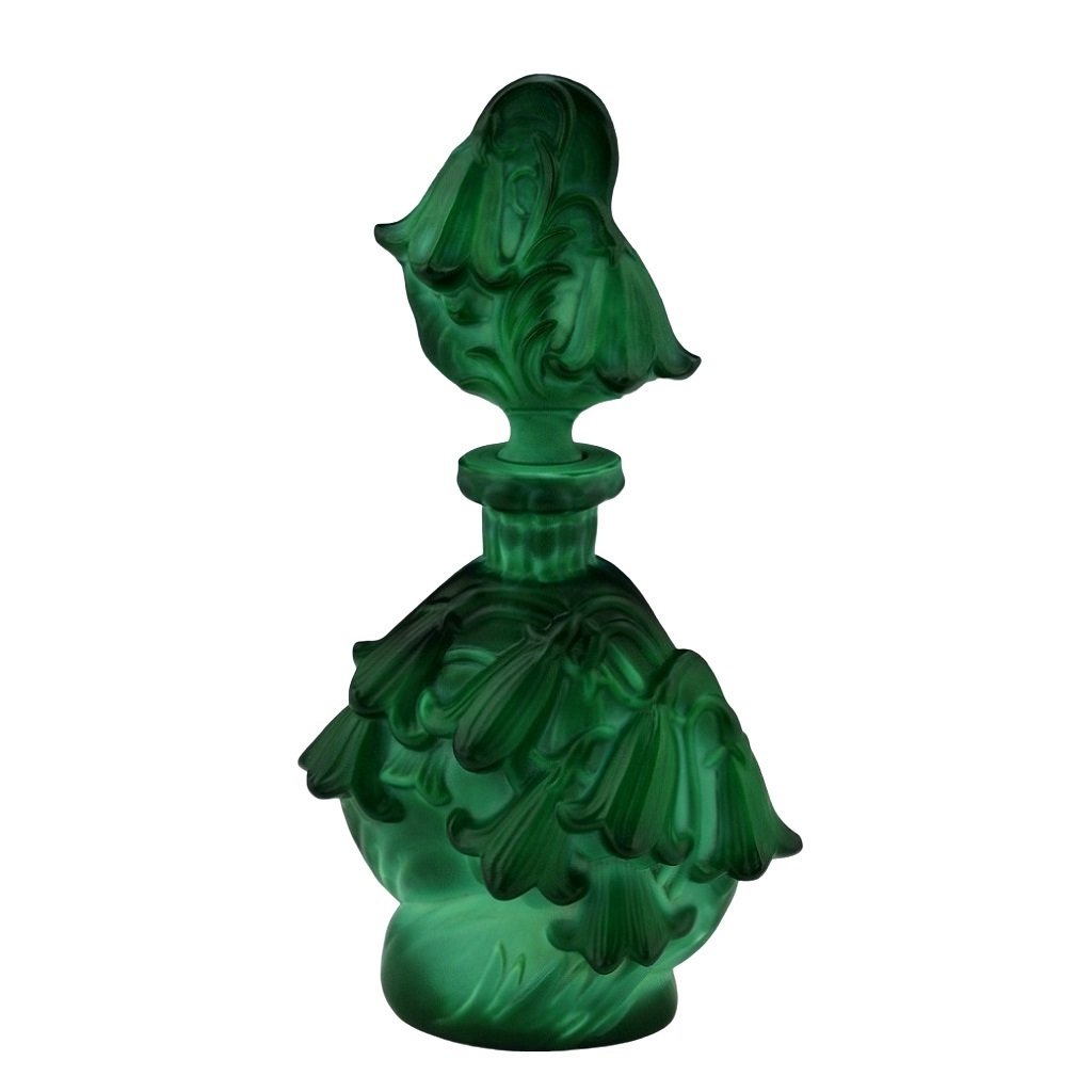 Malachite Glass Art Deco Perfume Bottle 1930s H. Hoffmann – Green Bellflower Relief | Bohemian Malachite Glass
