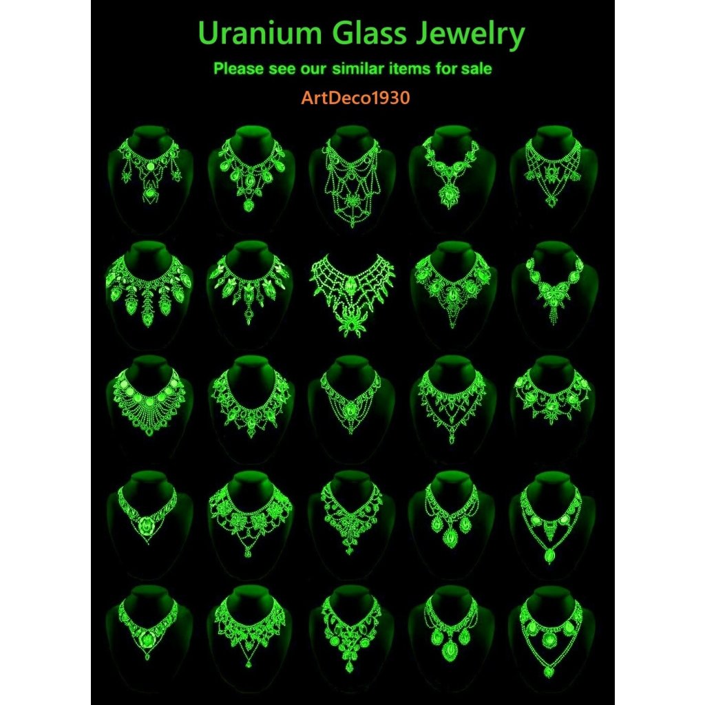 All the stones in this necklace are from uranium glass.