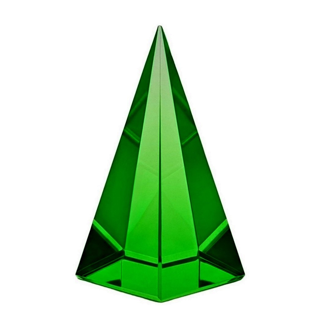Uranium Glass Pyramid Paperweight — Deep Green, UV Glow