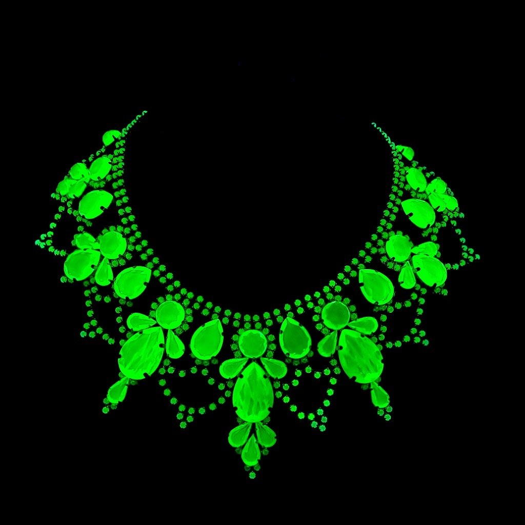 This vintage uranium glass necklace was produced in Bohemia and represents elegant jewelry design with a refined decorative composition. The royal teardrop garland design reflects clean geometry and balanced symmetry.