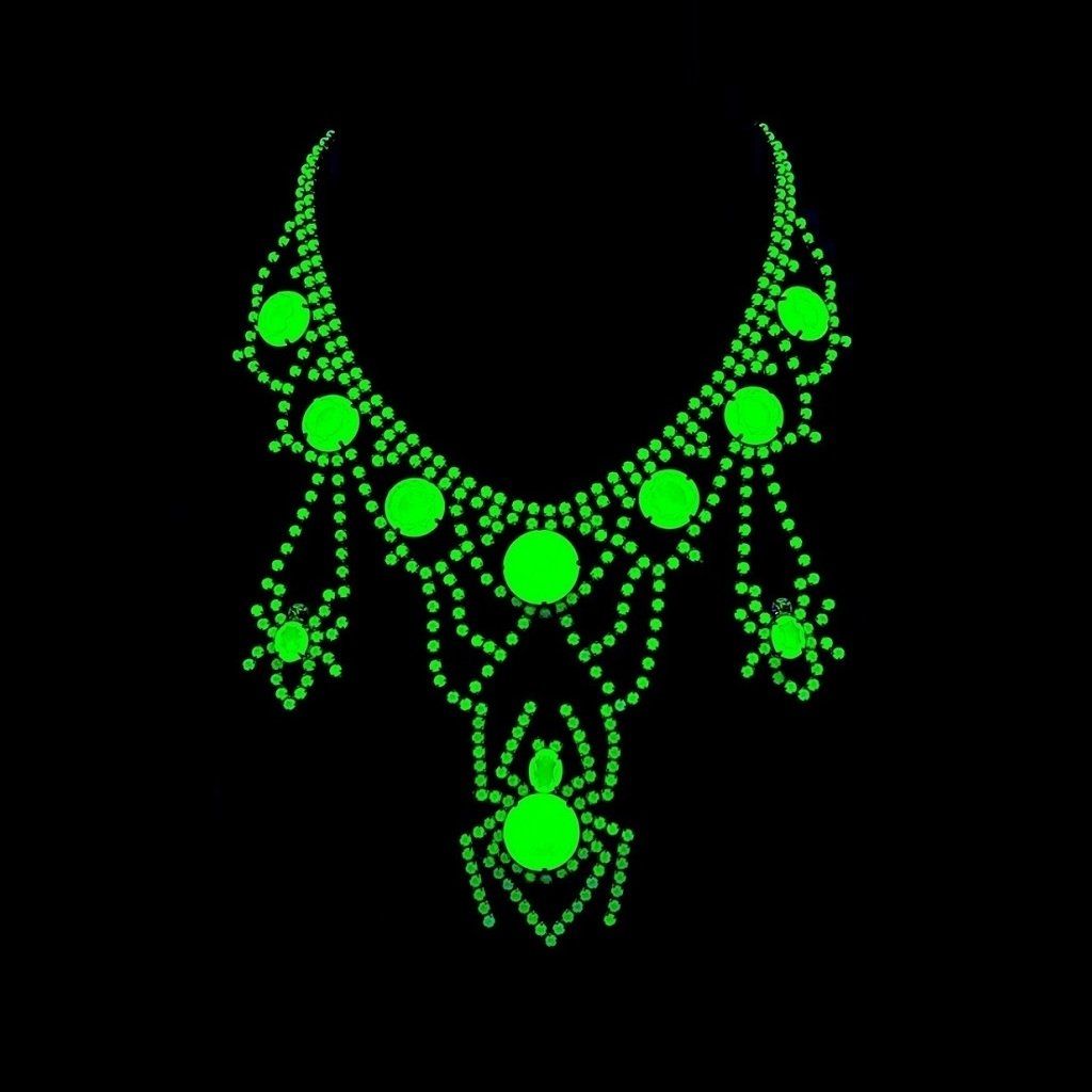 Uranium Glass Art Deco Triple Spider Necklace UV Glow — Vintage Jewelry