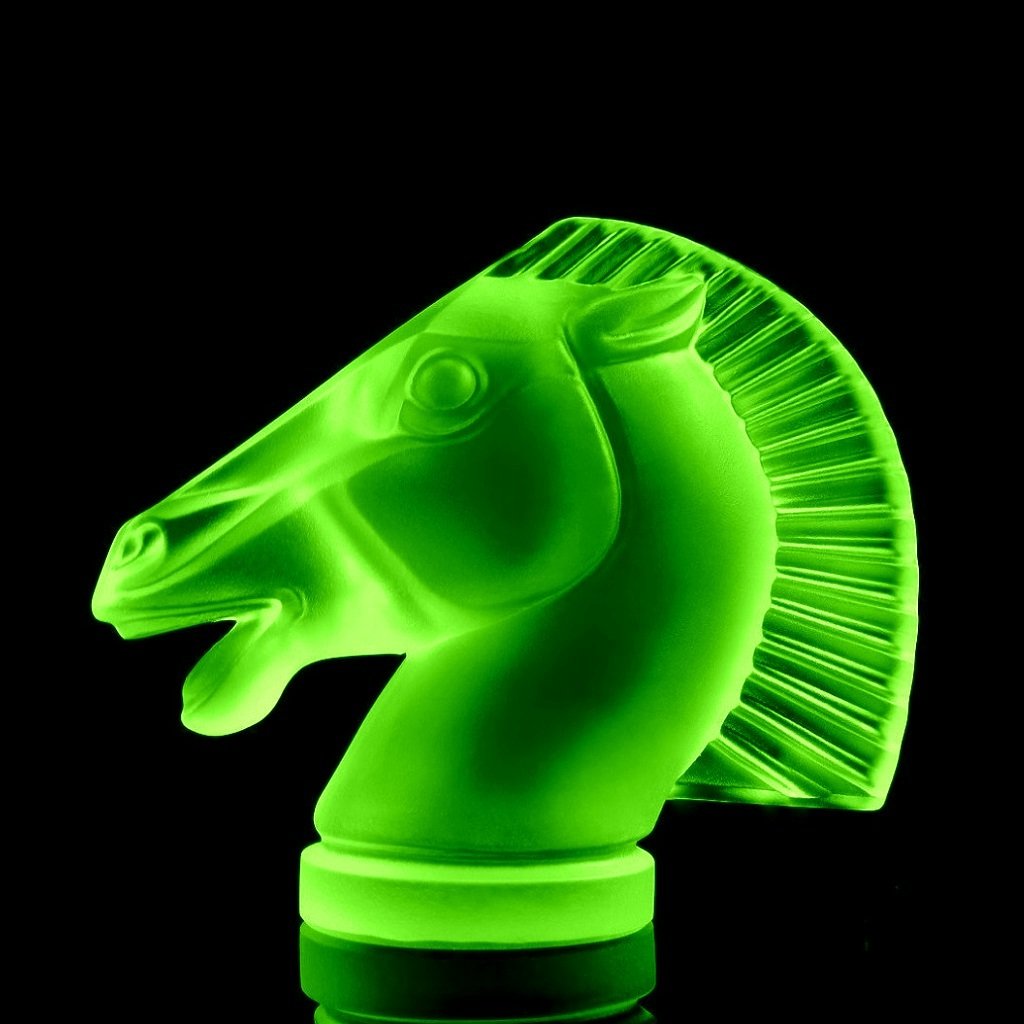 Art Deco Longchamp Hood Ornament Uranium Glass — 1930s H. Hoffmann