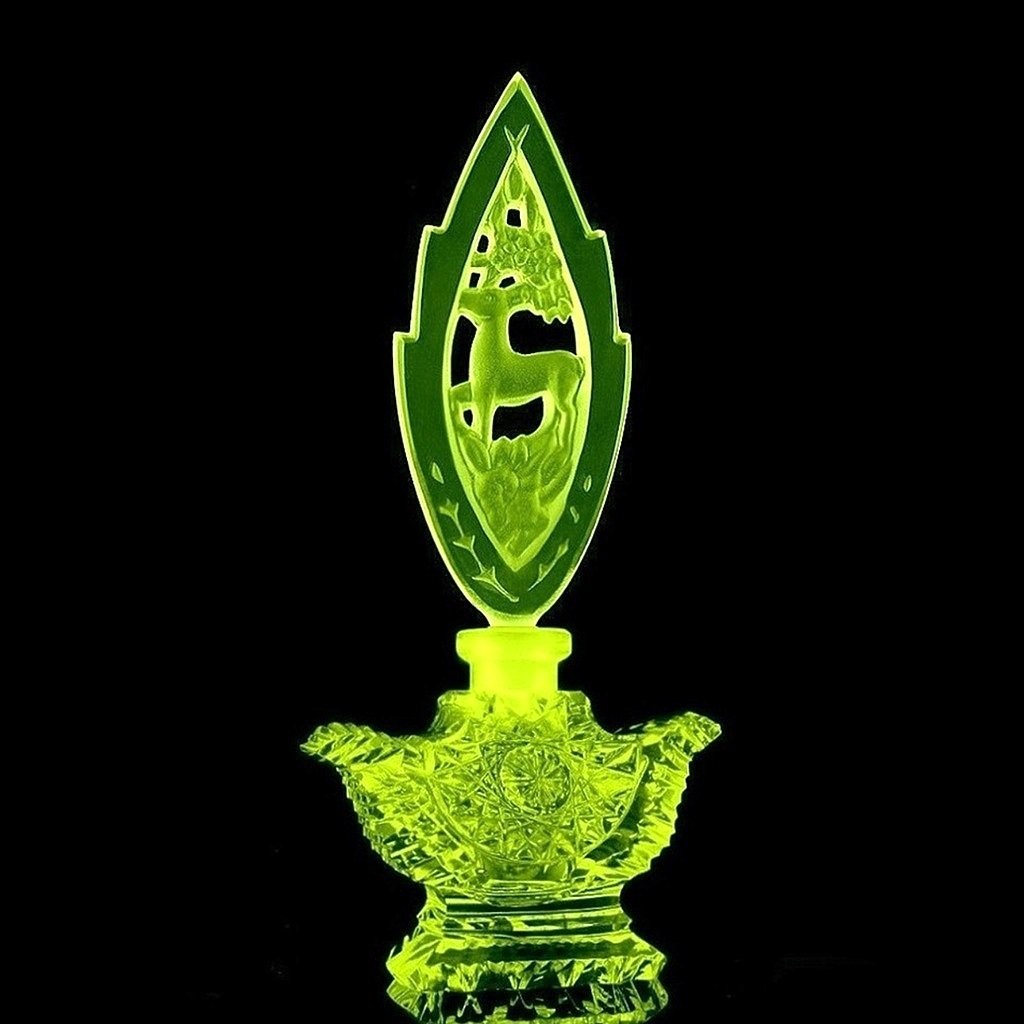 Uranium Glass Art Deco Deer Perfume Bottle — Bohemian